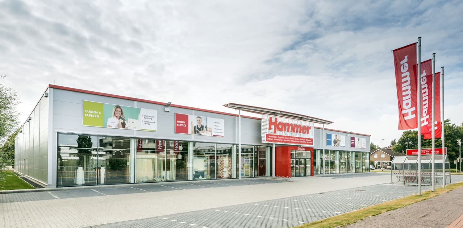 Manchmal ist für die optimale Umsetzung eines Bauprojektes mehr erforderlich als Kompetenzen in den Bereichen Planung und Architektur. Ein Beispiel dafür ist der Neubau eines Hammer Fachmarktes in Rheine, der zu mehr als 200 Hammer Fachmärkten in ganz Deutschland gehört. Wie bei vielen Handelsimmobilien mit einem vorgegebenen Auftritt im Corporate Design ging es weniger darum, einen kreativ-ästhetischen Ansatz für das Gebäude zu finden, sondern die Voraussetzungen für eine optimale Präsentation der Waren und den bestmöglichen Zugang für die Kunden zu schaffen.